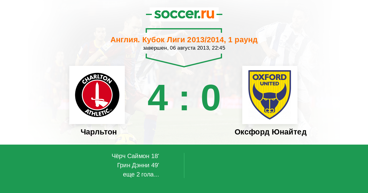 Протокол матча Чарльтон против Оксфорд Юнайтед