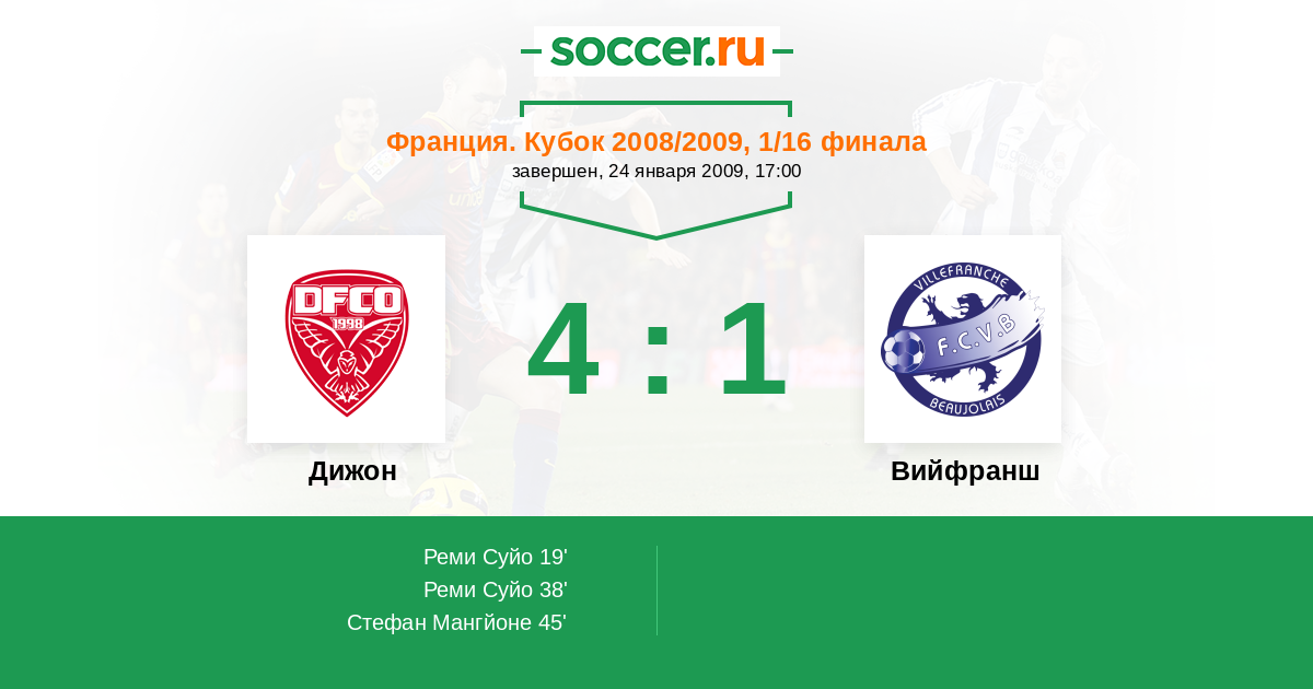 Протокол матча Дижон против Вийфранш