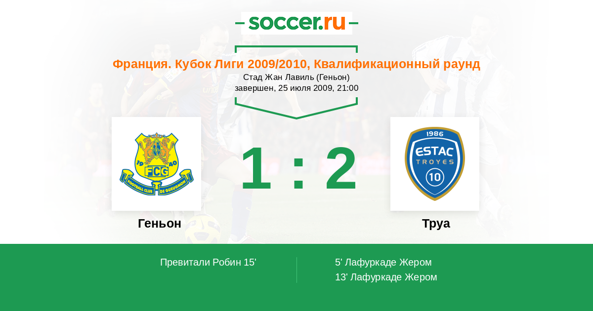 Протокол матча Геньон против Труа