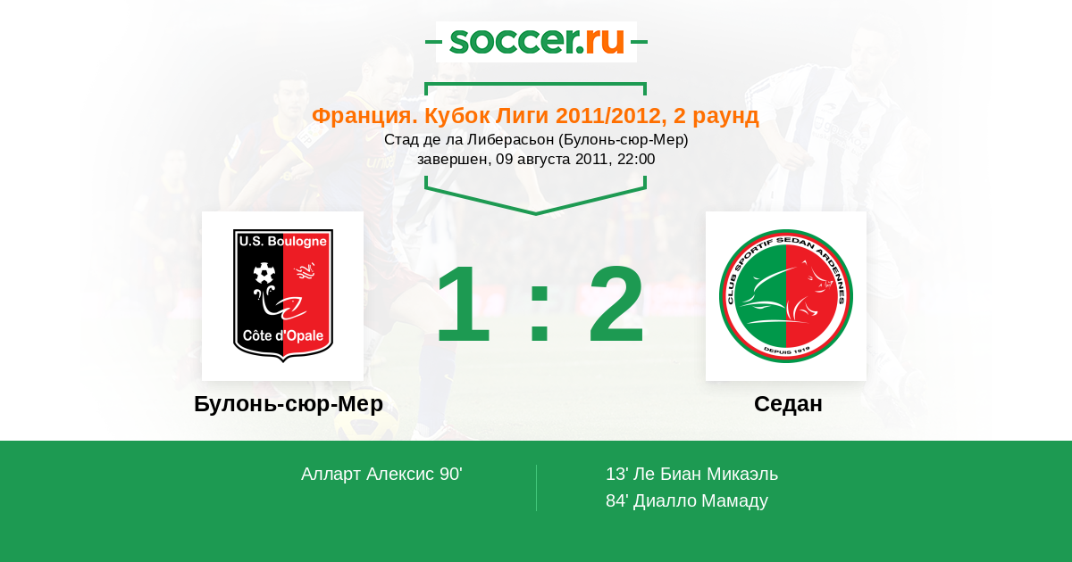 Протокол матча Булонь-сюр-Мер против Седан