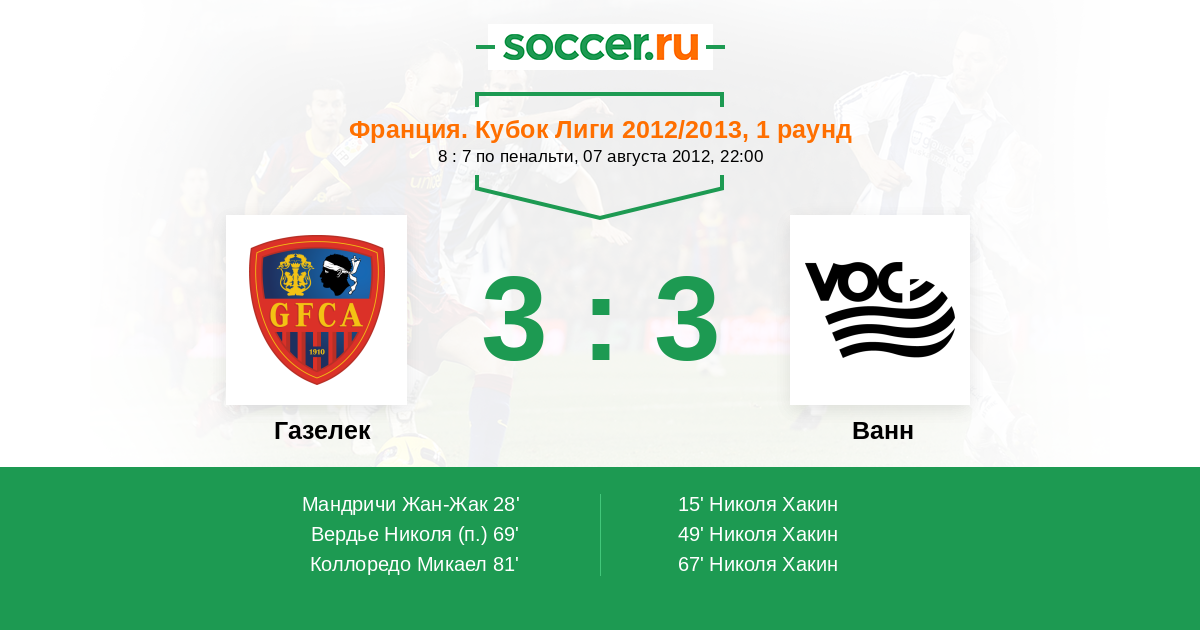Протокол матча Газелек против Ванн