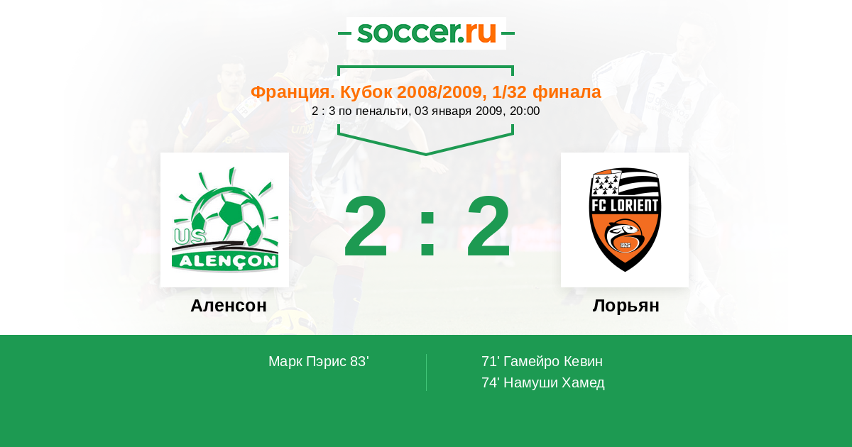 Протокол матча Аленсон против Лорьян