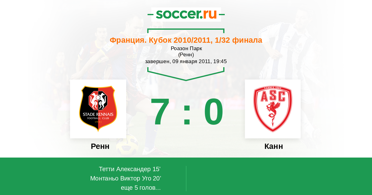 Протокол матча Ренн против Канн