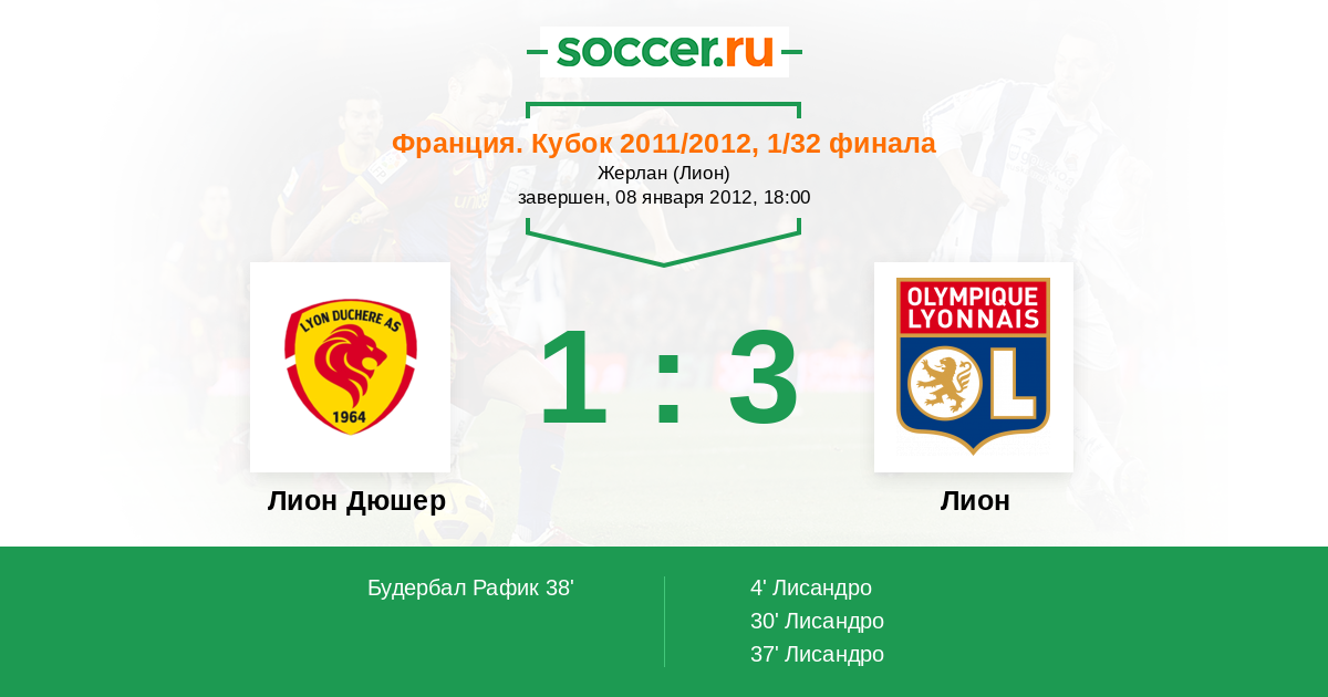 Протокол матча Лион Дюшер против Лион