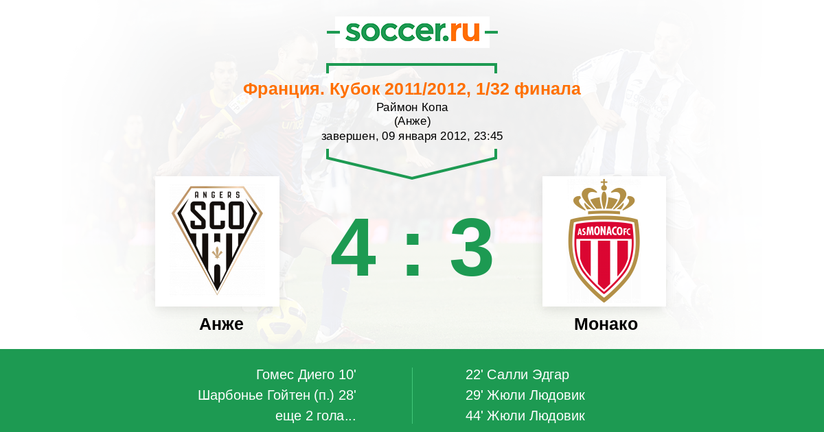 Протокол матча Анже против Монако