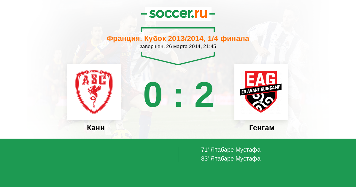 Протокол матча Канн против Генгам