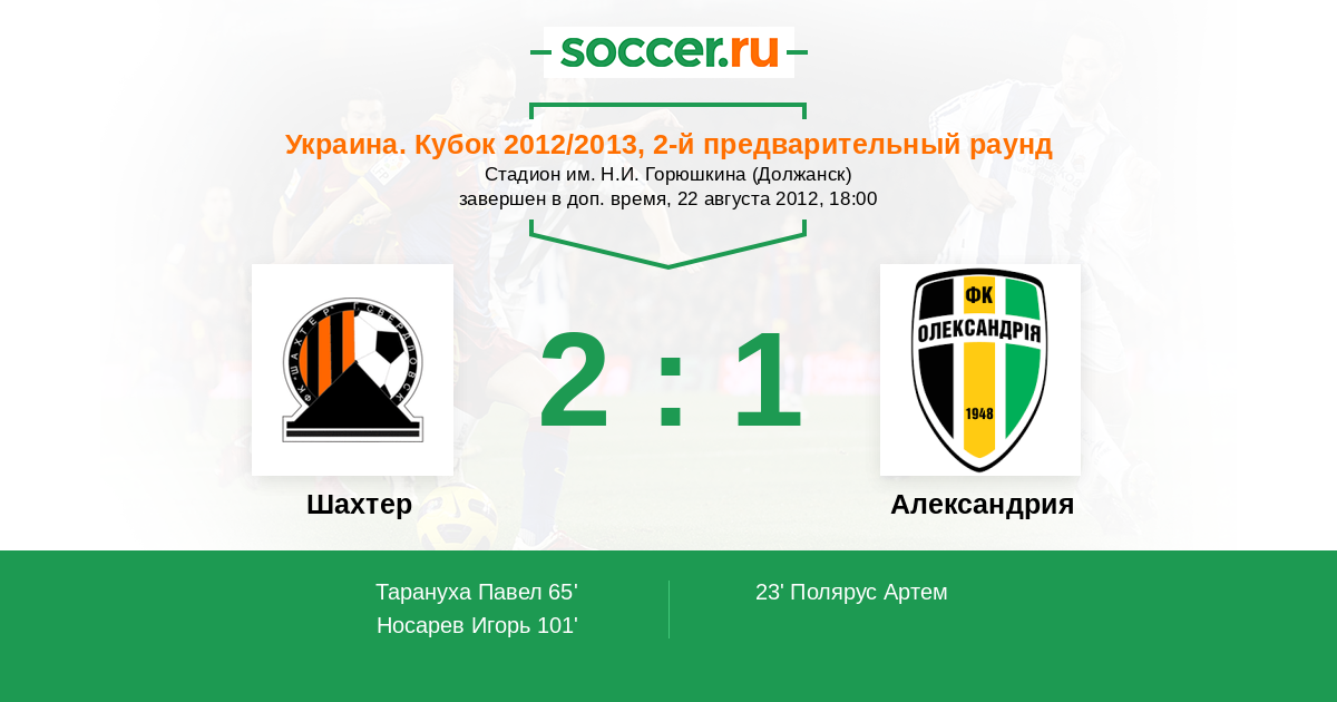 Протокол матча Шахтер против Александрия