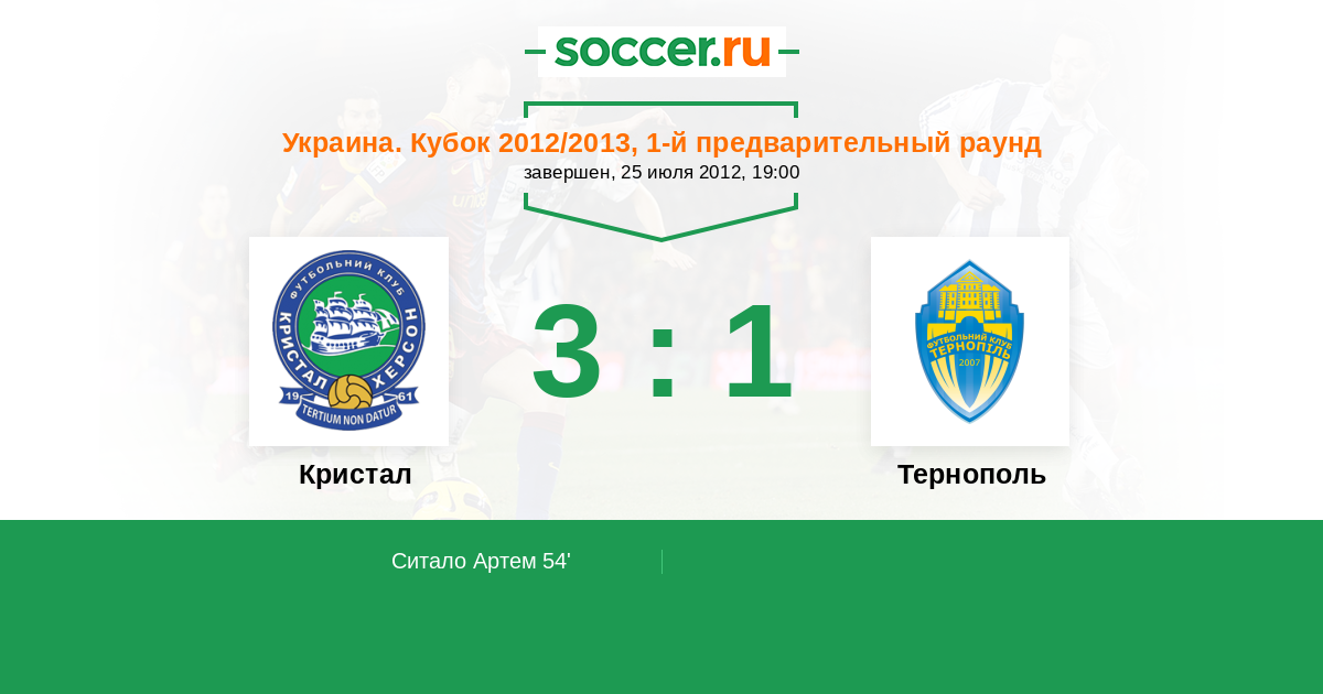 Протокол матча Кристал против Тернополь