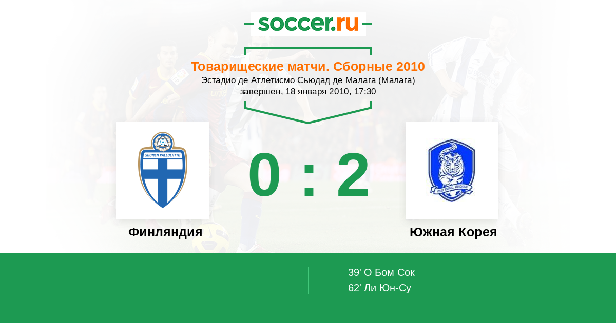 Протокол матча Финляндия против Южная Корея