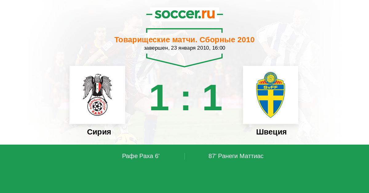 Протокол матча Сирия против Швеция