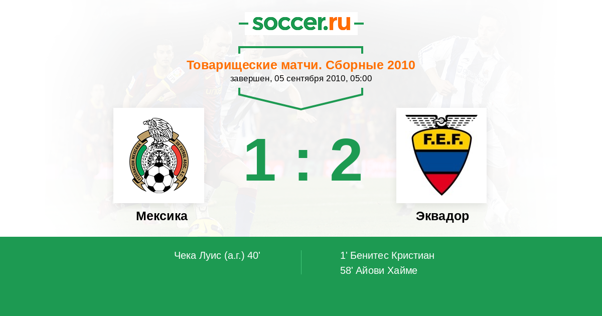 Протокол матча Мексика против Эквадор