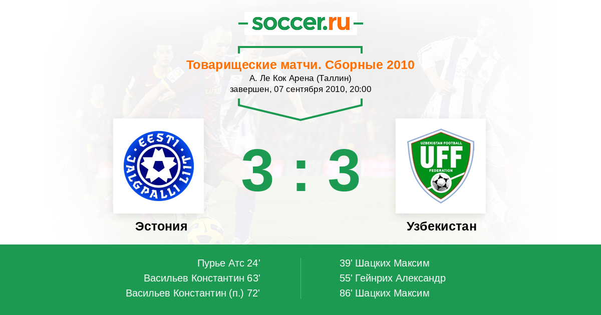 Протокол матча Эстония против Узбекистан