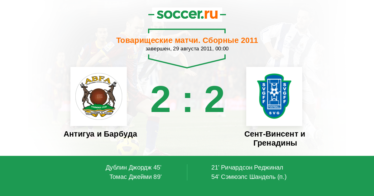 Протокол матча Антигуа и Барбуда против Сент-Винсент и Гренадины