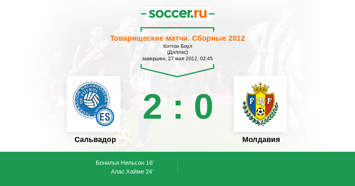 Протокол матча Сальвадор против Молдавия