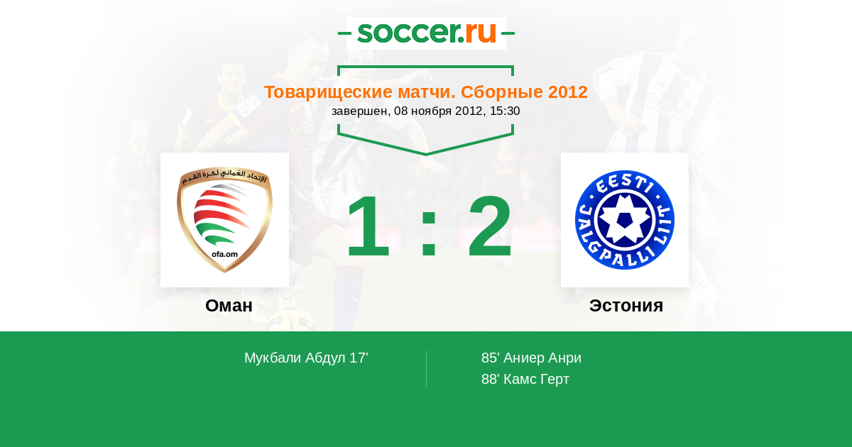 Протокол матча Оман против Эстония