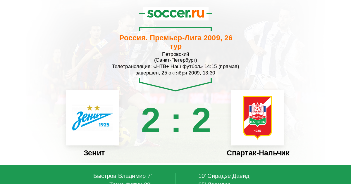 Протокол матча Зенит против Спартак-Нальчик