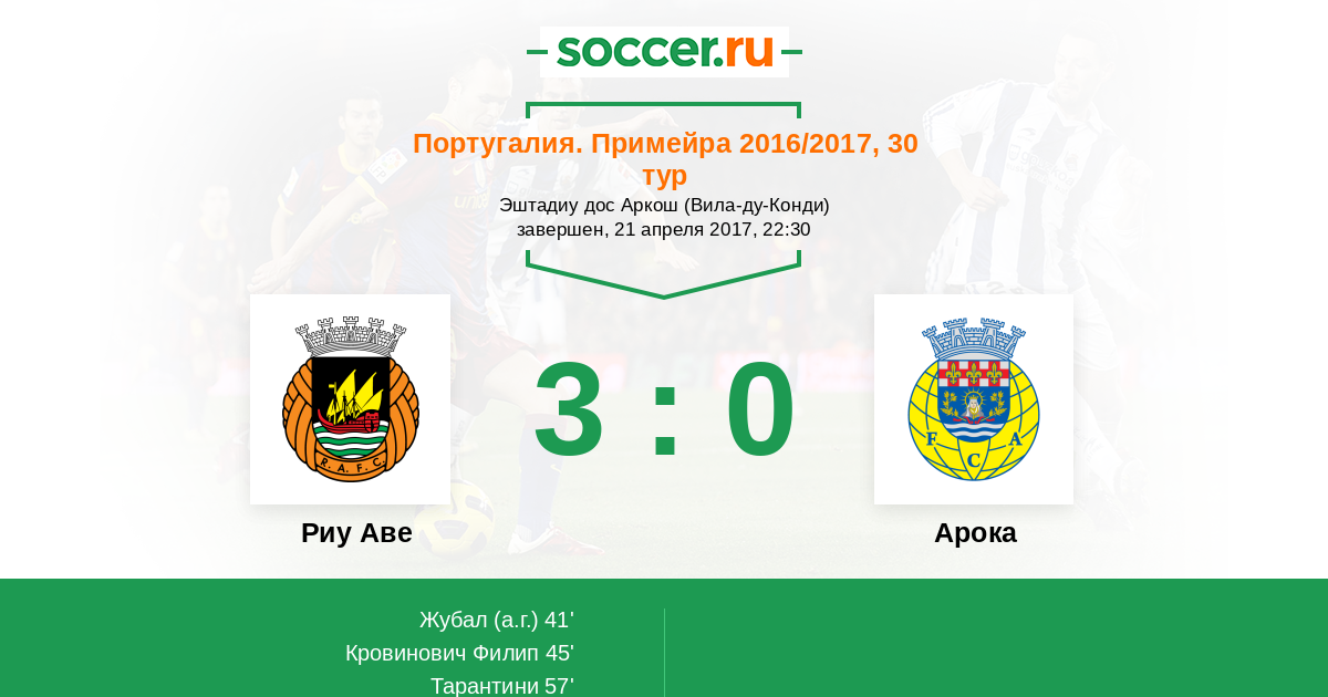 Протокол матча Риу Аве против Арока