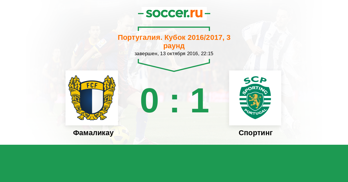 Португалия. Кубок 16.11.2017 Спортинг Логотип футбольный клуб Спортинг (Лиссабон) 2:0 Логотип футбольный клуб Фамаликау (Вила Нова де Фамаликау) Фамаликау