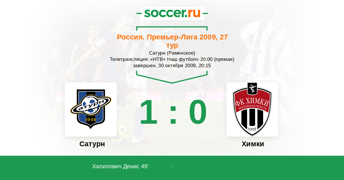 Протокол матча Сатурн против Химки