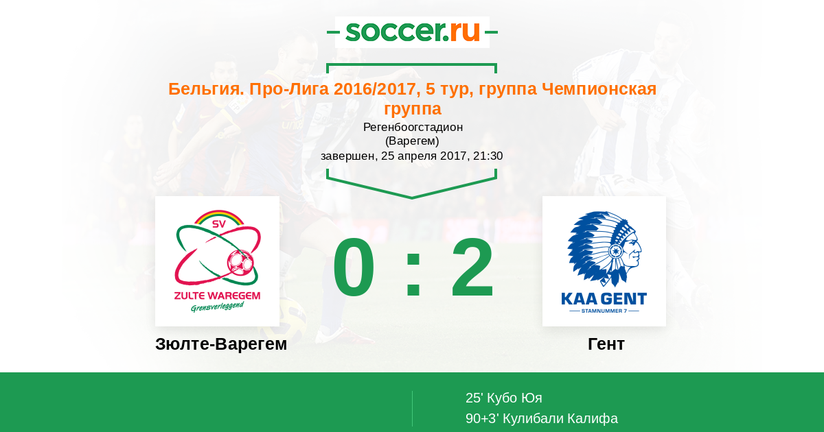 Протокол матча Зюлте-Варегем против Гент