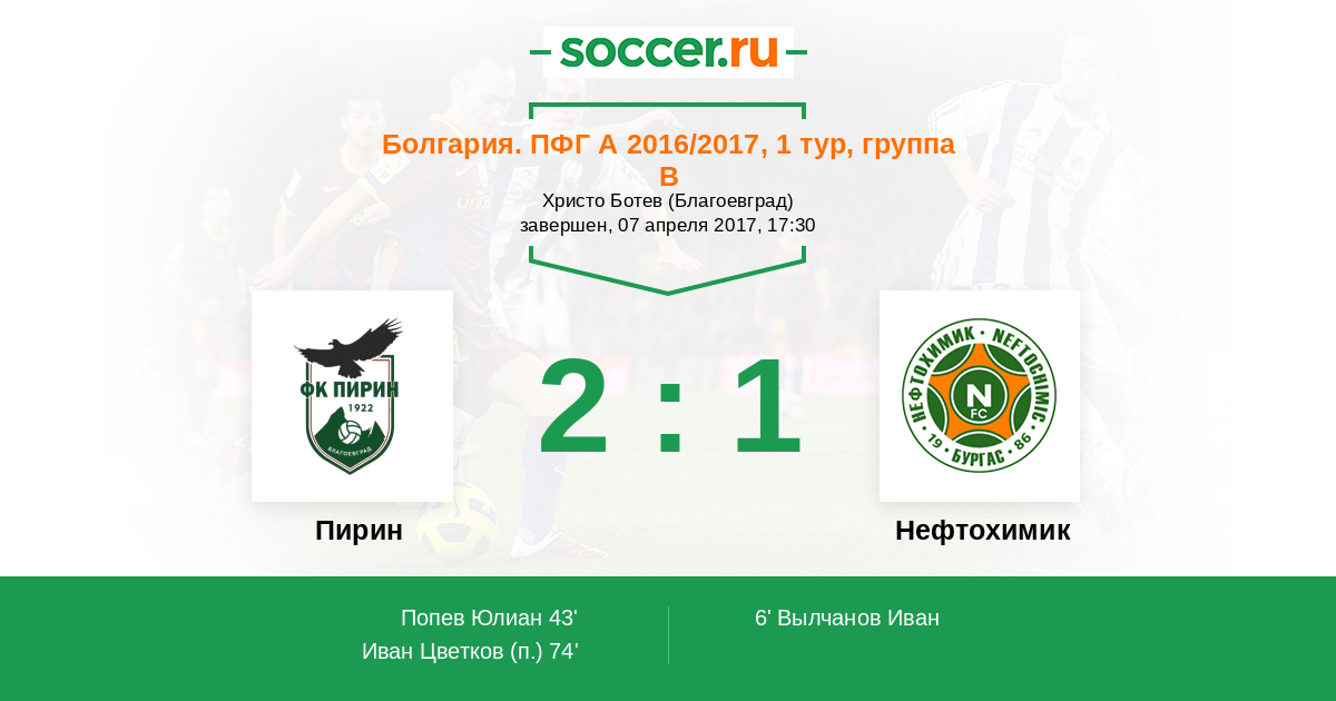 Протокол матча Пирин против Нефтохимик