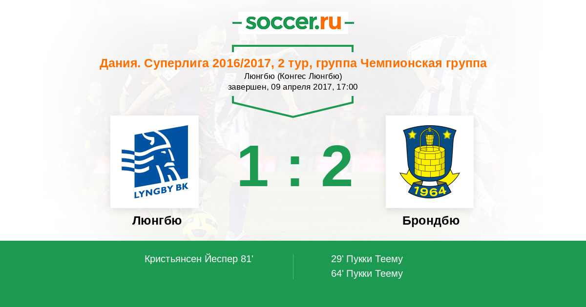 Протокол матча Люнгбю против Брондбю