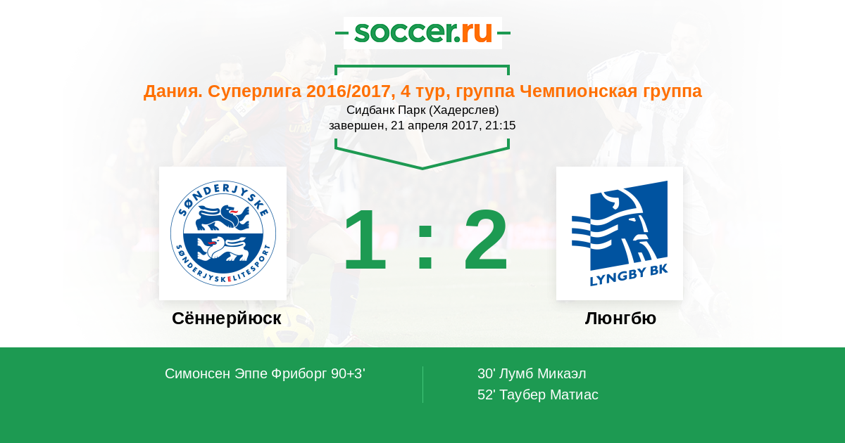 Протокол матча Сённерйюск против Люнгбю