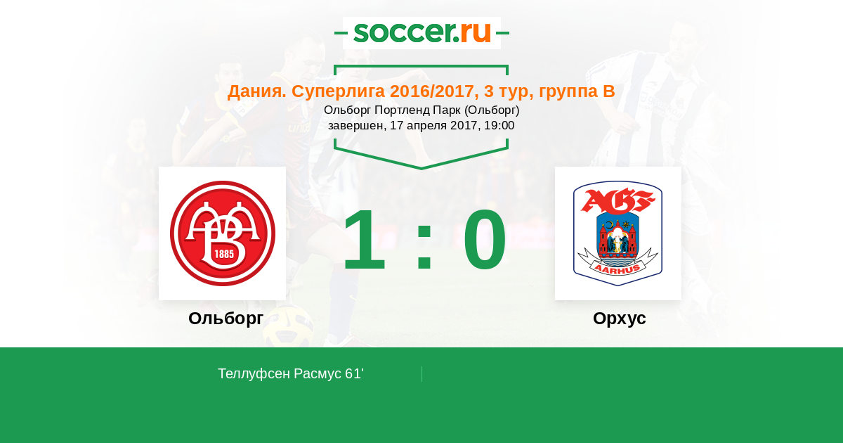 Протокол матча Ольборг против Орхус