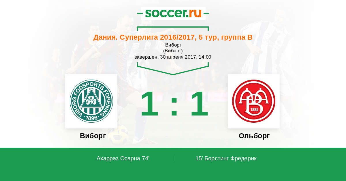 Протокол матча Виборг против Ольборг