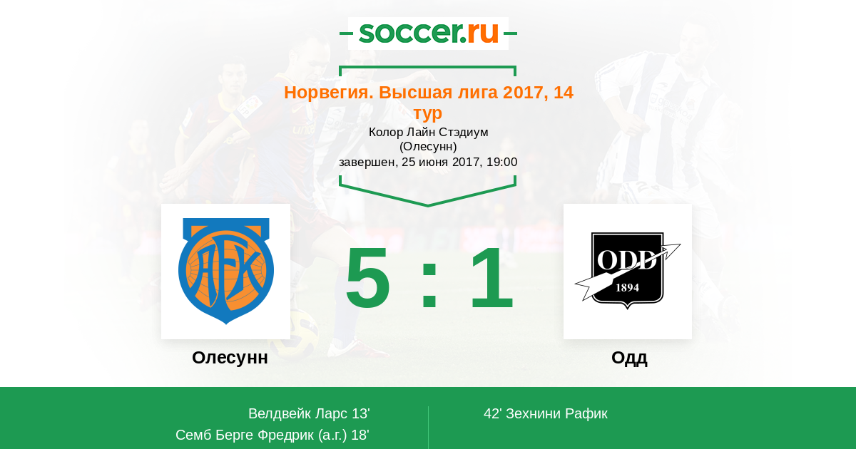 18' (2:0) Автогол Семб Берге Фредрик (16)