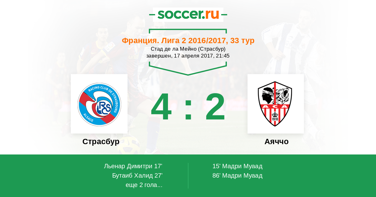 Протокол матча Страсбур против Аяччо