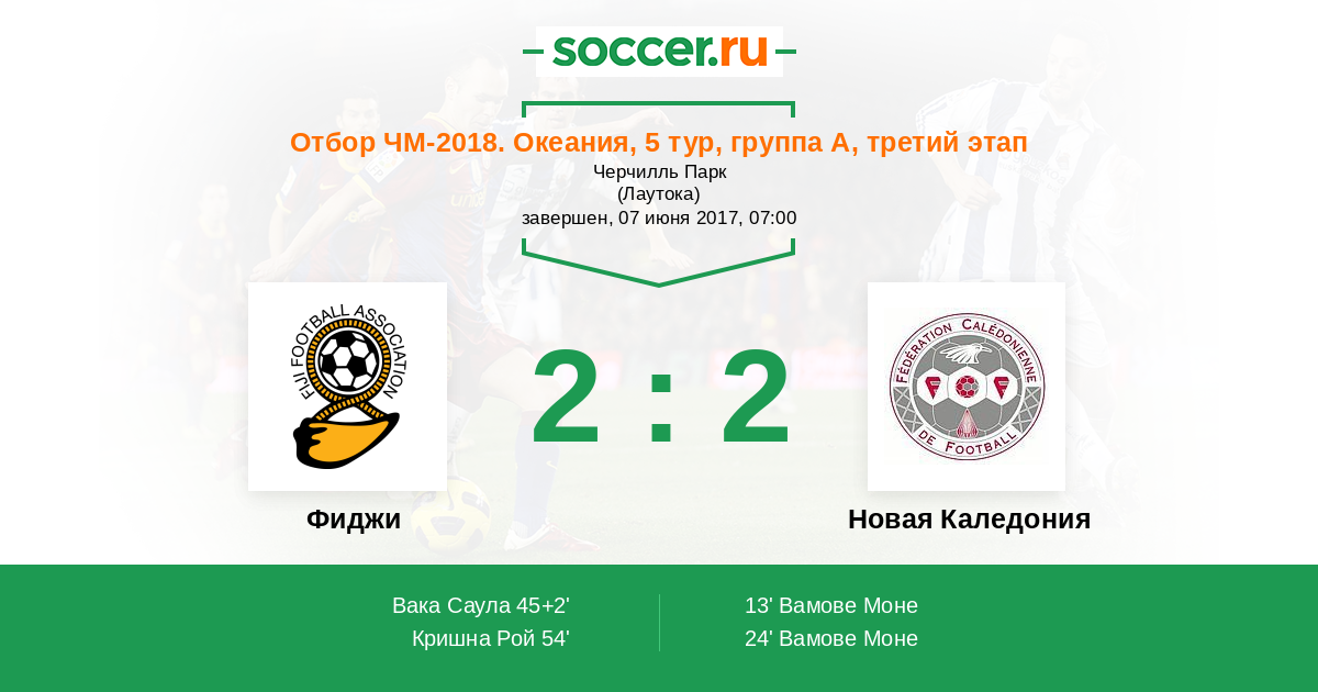 Протокол матча Фиджи против Новая Каледония