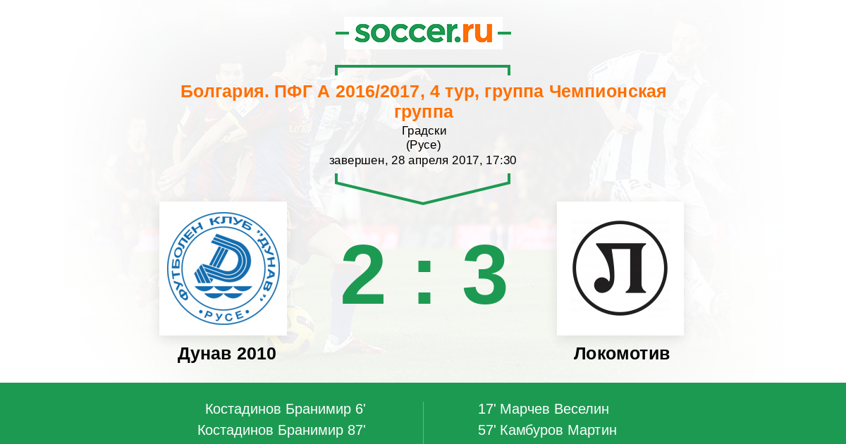 Протокол матча Дунав 2010 против Локомотив
