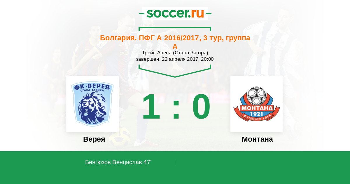Протокол матча Верея против Монтана