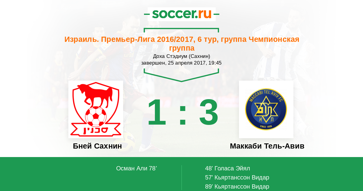 Протокол матча Бней Сахнин против Маккаби Тель-Авив
