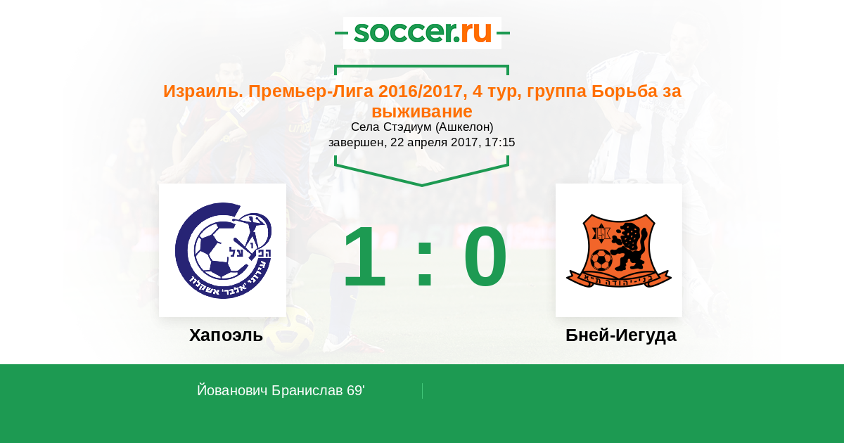 Протокол матча Хапоэль против Бней-Иегуда