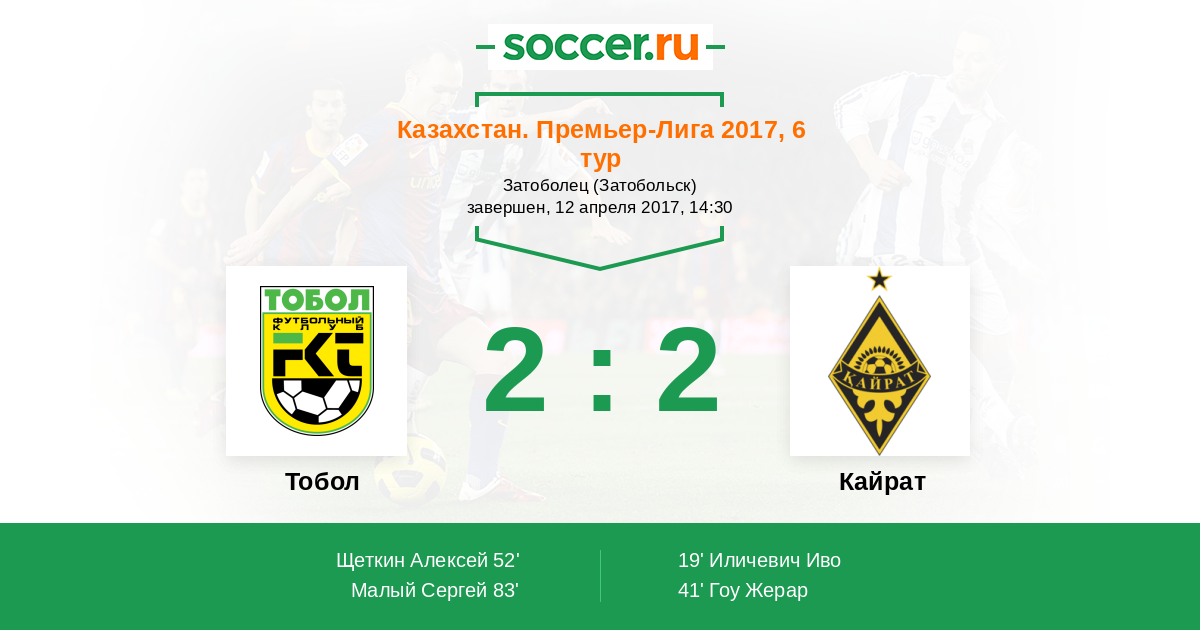 Протокол матча Тобол против Кайрат
