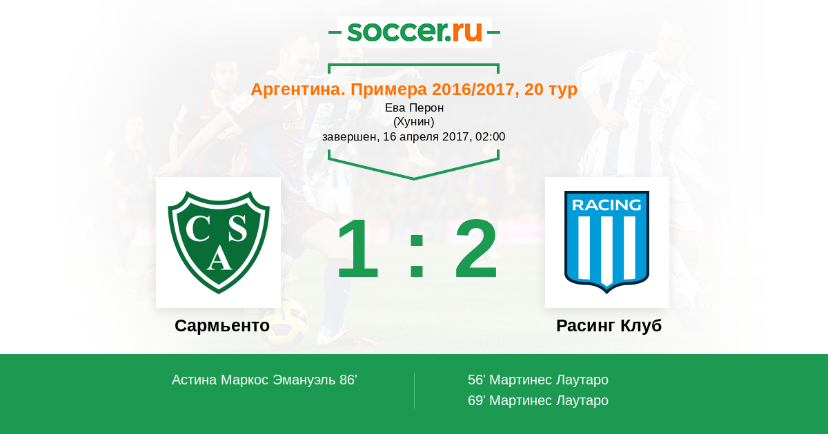 69' (0:2) Мартинес Лаутаро (32) (Акунья Маркос (17))
