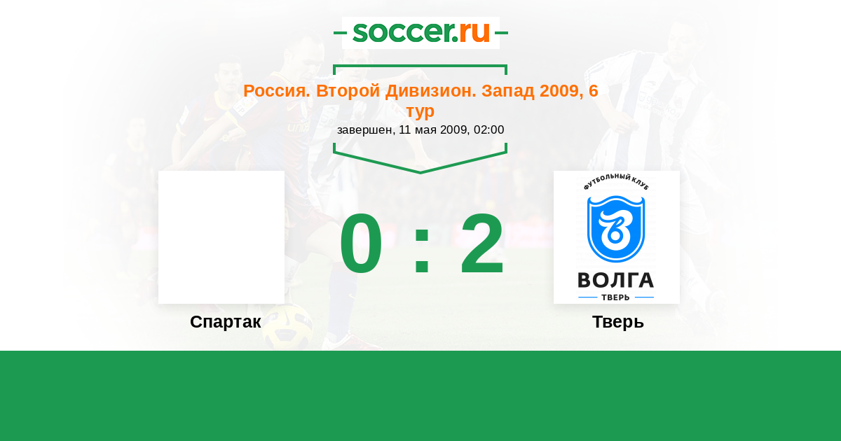 Россия. Вторая лига. Группа 2 24.08.2009 Тверь Логотип футбольный клуб Тверь 3:0 Логотип футбольный клуб Спартак (Щелково) Спартак