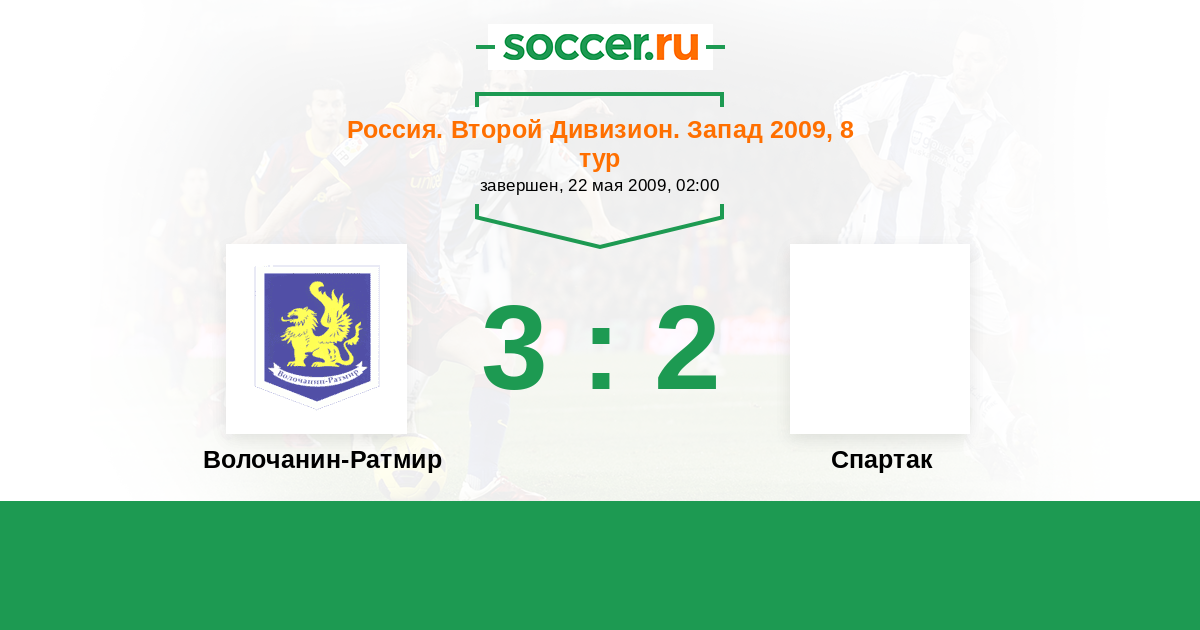 Россия. Вторая лига. Группа 2 03.09.2009 Спартак Логотип футбольный клуб Спартак (Щелково) 0:3 Логотип футбольный клуб Волочанин-Ратмир (Вышний Волочек) Волочанин-Ратмир
