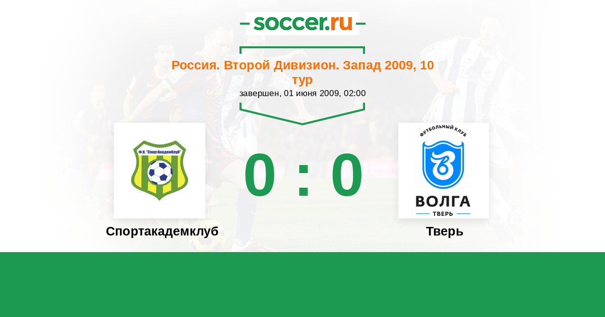 Россия. Вторая лига. Группа 2 29.04.2010 Тверь Логотип футбольный клуб Тверь 0:0 Логотип футбольный клуб Спортакадемклуб (Москва) Спортакадемклуб