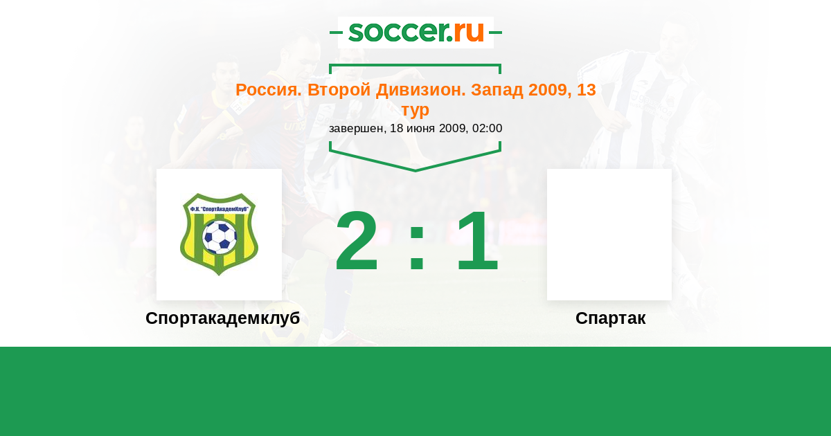 Россия. Вторая лига. Группа 2 12.09.2010 Спортакадемклуб Логотип футбольный клуб Спортакадемклуб (Москва) 1:3 Логотип футбольный клуб Зеленоград (Москва) Зеленоград