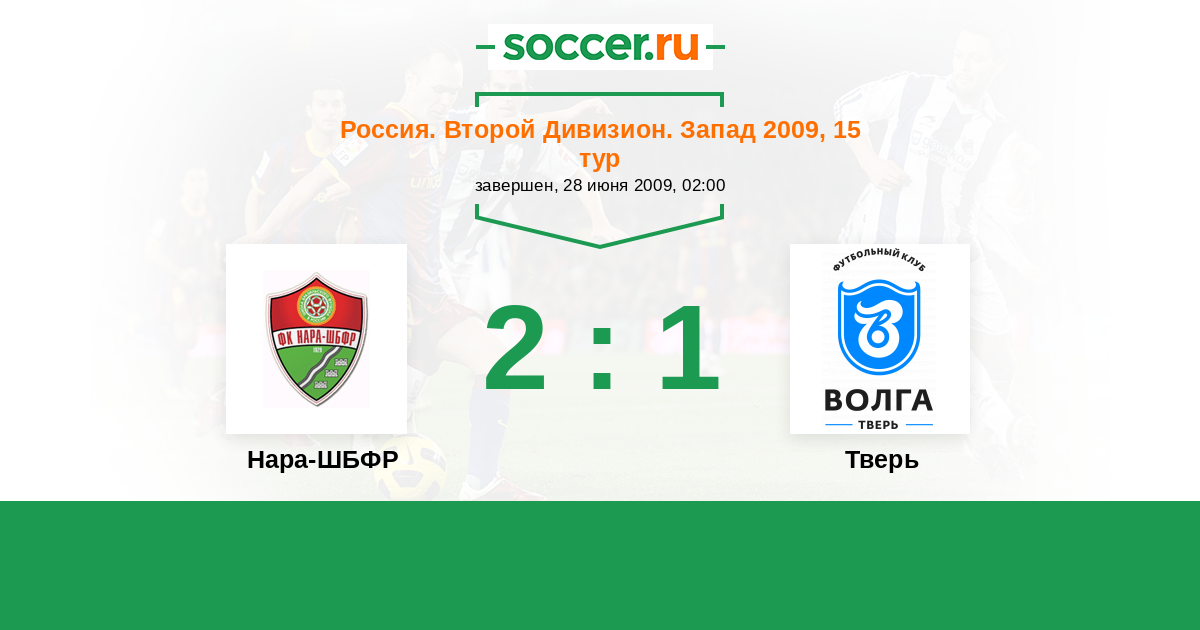 Россия. Вторая лига. Группа 2 09.10.2009 Тверь Логотип футбольный клуб Тверь 2:1 Логотип футбольный клуб Нара-ШБФР (Наро-Фоминск) Нара-ШБФР