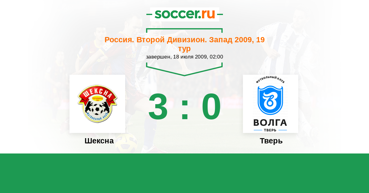 Россия. Вторая лига. Группа 2 28.10.2009 Тверь Логотип футбольный клуб Тверь 2:0 Логотип футбольный клуб Шексна (Череповец) Шексна