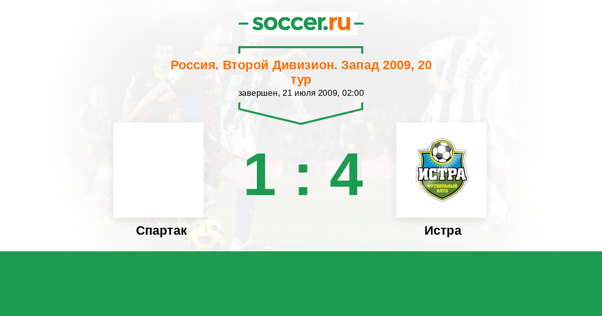 Россия. Вторая лига. Группа 2 31.10.2009 Истра Логотип футбольный клуб Истра 3:0 Логотип футбольный клуб Спартак (Щелково) Спартак