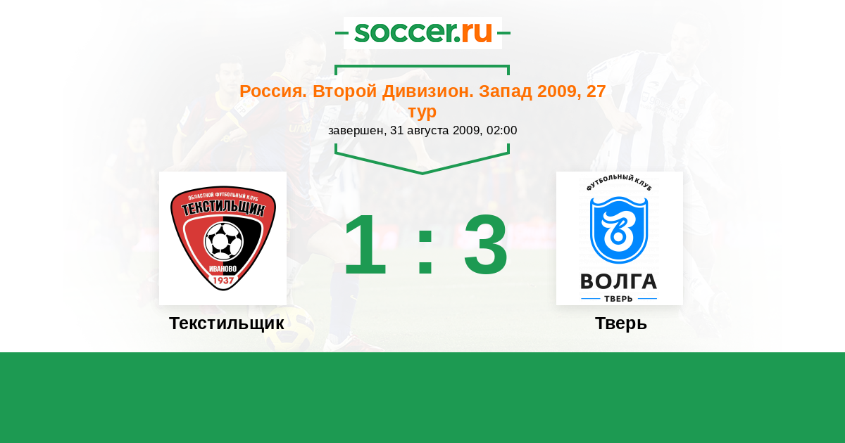 Россия. Вторая лига. Группа 2 19.05.2009 Тверь Логотип футбольный клуб Тверь 1:0 Логотип футбольный клуб Текстильщик (Иваново) Текстильщик