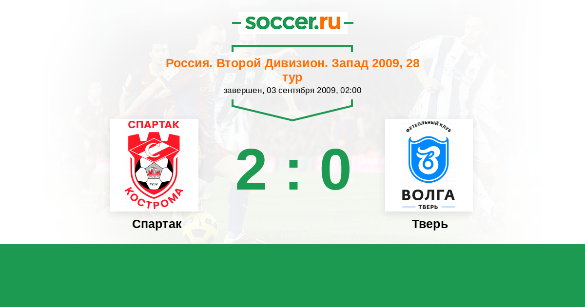 Россия. Вторая лига. Группа 2 22.05.2009 Тверь Логотип футбольный клуб Тверь 0:1 Логотип футбольный клуб Спартак Кострома Спартак Кострома