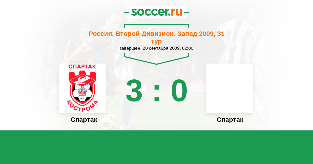 Россия. Вторая лига. Группа 2 08.06.2009 Спартак Логотип футбольный клуб Спартак (Щелково) 0:2 Логотип футбольный клуб Спартак Кострома Спартак Кострома