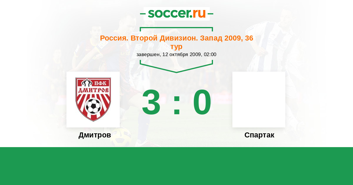 Россия. Вторая лига. Группа 2 12.10.2009 Дмитров Логотип футбольный клуб Дмитров 3:0 Логотип футбольный клуб Спартак (Щелково) Спартак
