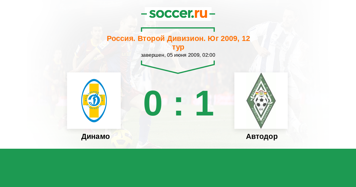 Россия. Вторая лига. Группа 1 23.09.2009 Автодор Логотип футбольный клуб Автодор (Владикавказ) 4:3 Логотип футбольный клуб Динамо Ставрополь Динамо Ставрополь